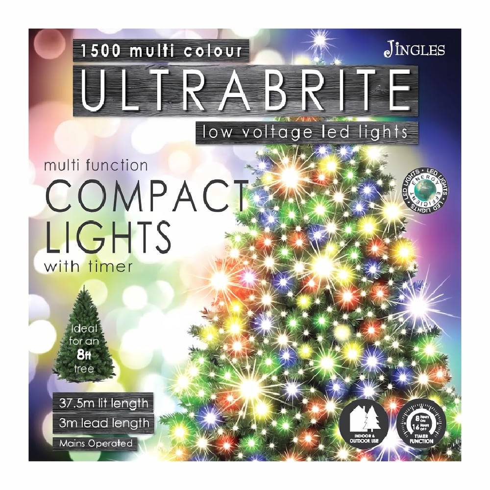 Illuminate your holiday season with 1500 Multi Function Ultra Brite LED Lights - the perfect blend of vibrant colours, energy efficiency, and convenience for trees up to 8ft. Make your Christmas decorations shine with 8 dazzling functions, an 8-hour timer, and a safe BS IP44 adaptor for indoor and outdoor use.