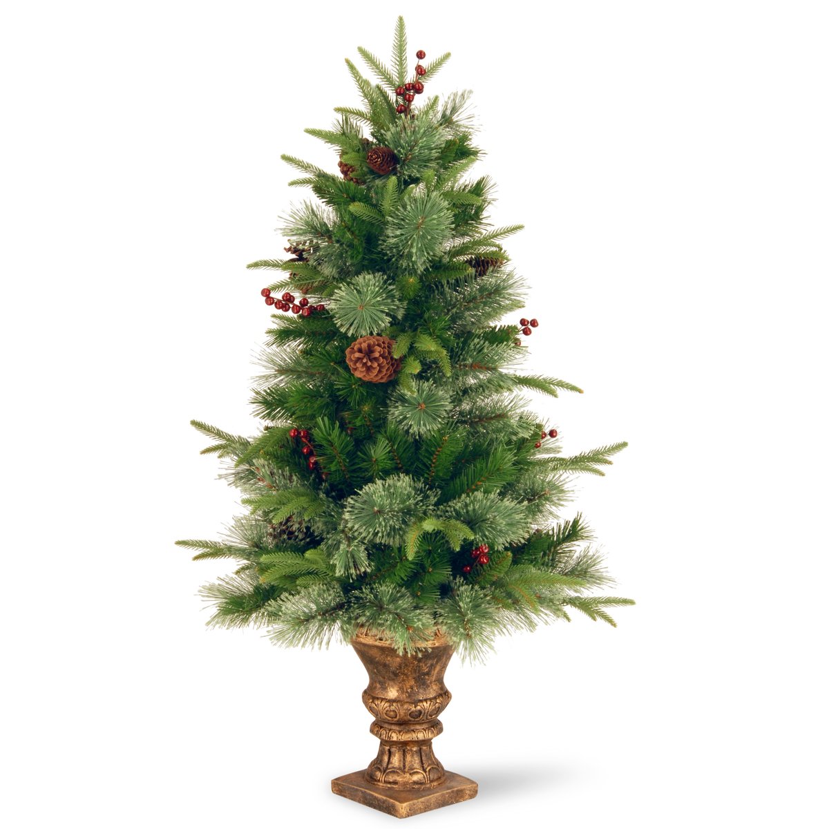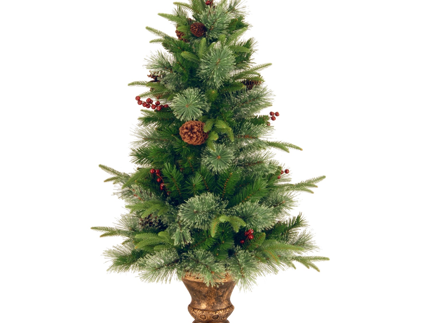 Bring the magic of a winter forest into your home with the Balmoral Fir Potted Christmas Tree 4ft, a charming entrance tree adorned with realistic berries, cones.
