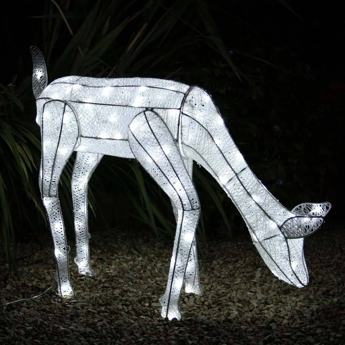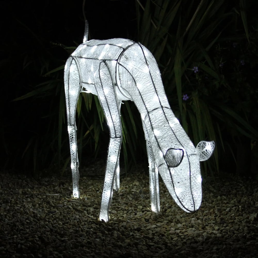 Designed for convenience and durability, this light-up grazing doe features an extra-long 12m clear power cable, offering flexibility in placement. Built for outdoor use, it includes IP44 protection and a ground fixing kit to ensure stability in winter weather conditions. Lightweight yet sturdy, it is easy to position and secure, making it a timeless festive decoration. Whether displayed alone or as part of a reindeer family, this glowing doe adds a magical ambiance to any Christmas setting.