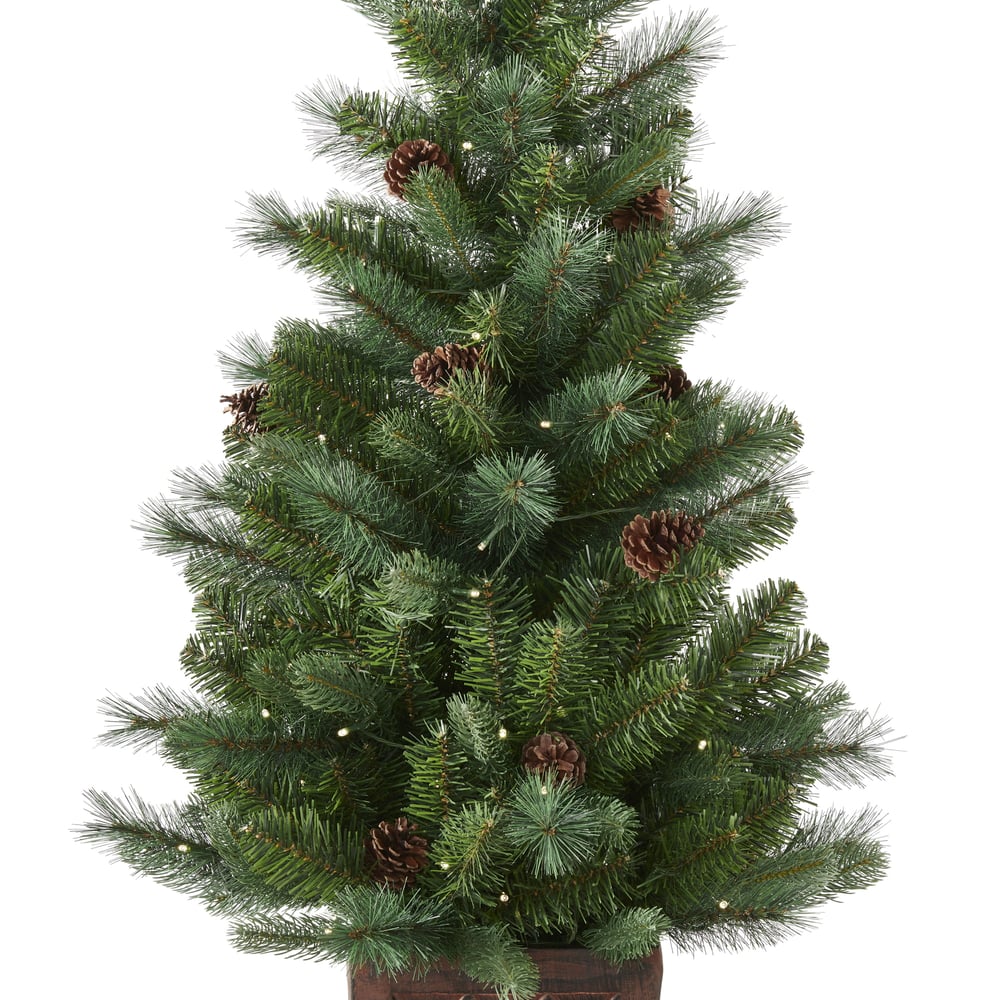 The Hazlenut Potted Pine Christmas Tree 4ft brings natural charm to your festive décor with 210 mixed PVC and PE tips for a lifelike, full look.