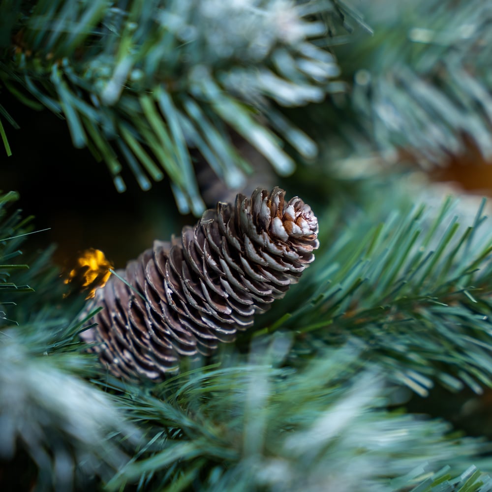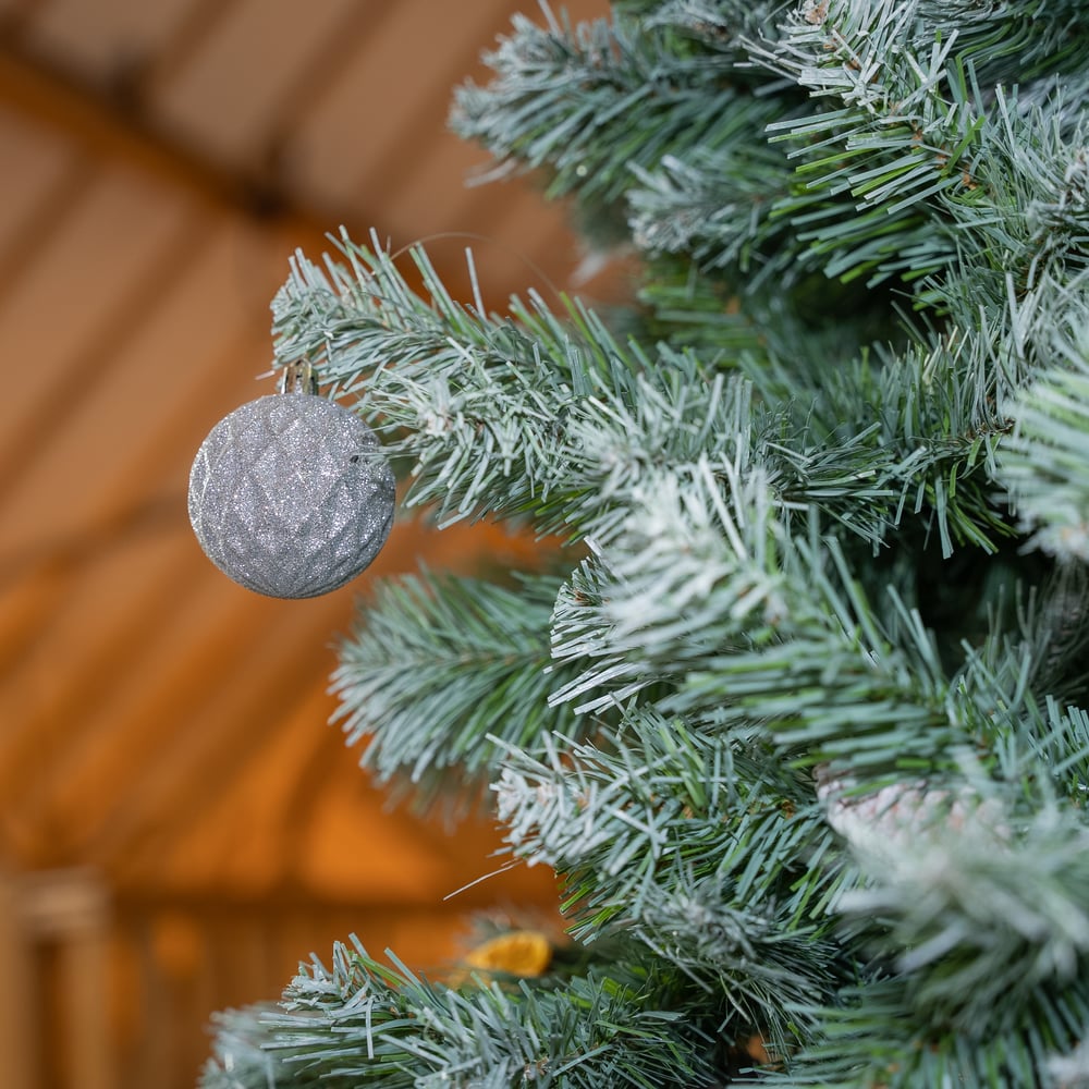 Bring the serene beauty of a lakeside winter forest into your home with the Lakeside Spruce Slim Christmas Tree, an elegant 8ft masterpiece adorned with natural-looking cones and 1154 realistic PVC tips.