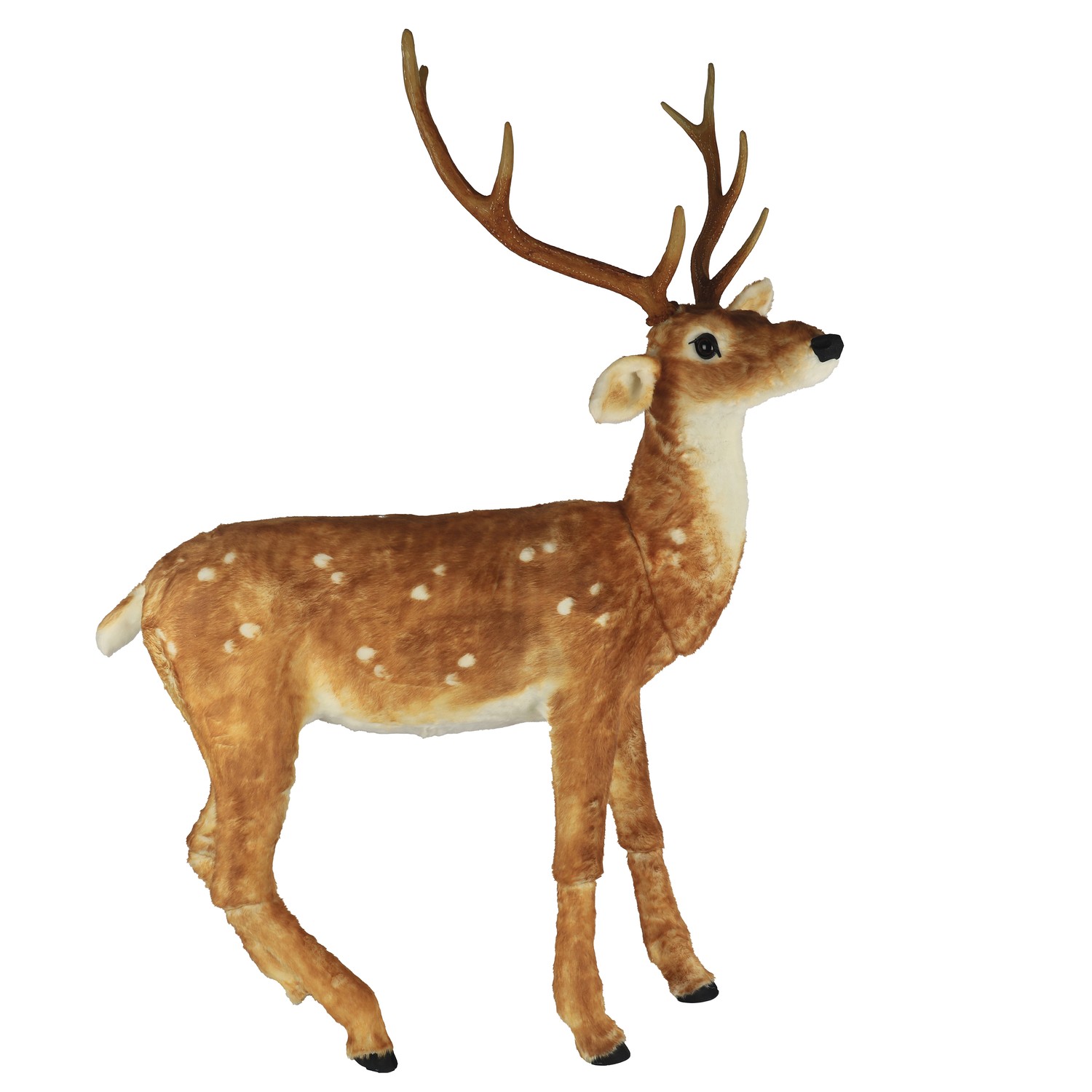 This beautifully crafted reindeer features a plush feel and is finished in soft polyester fabric, making it a standout piece for your festive decor.